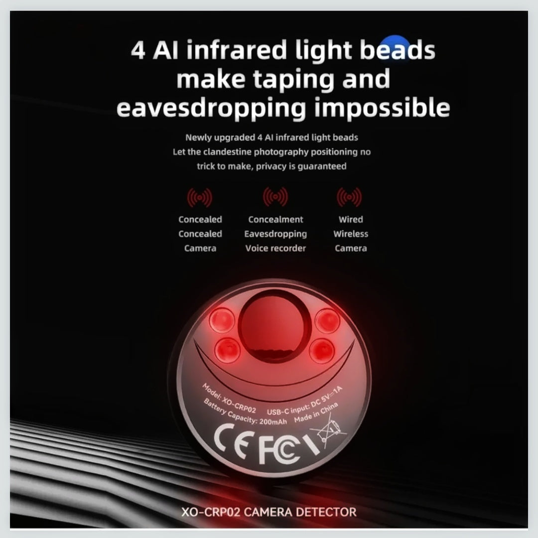 A compact and reliable device designed to quickly detect hidden cameras in hotels, Airbnb rooms, changing areas, offices, and other private spaces.