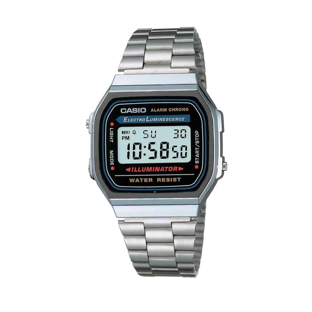 A timeless classic with a sleek stainless steel band and durable resin case. Features a 36.2mm case, reliable quartz movement, and easy-to-read digital display—perfect for everyday style and functionality.