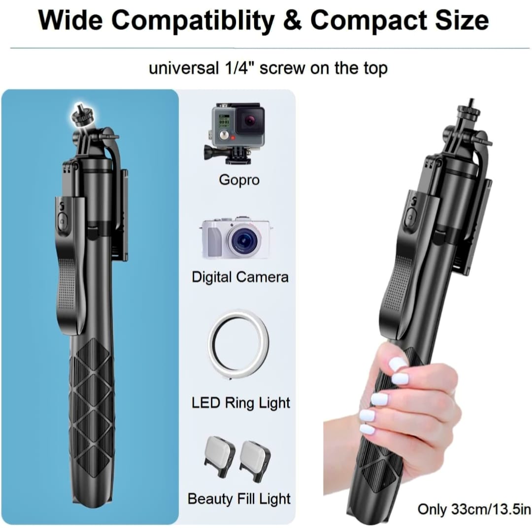Compatible with smartphones, cameras, webcams, and ring lights, it's ideal for vlogging, live streaming, video calls, and photography. The umbrella-style tripod base and non-slip feet provide excellent stability on any surface.