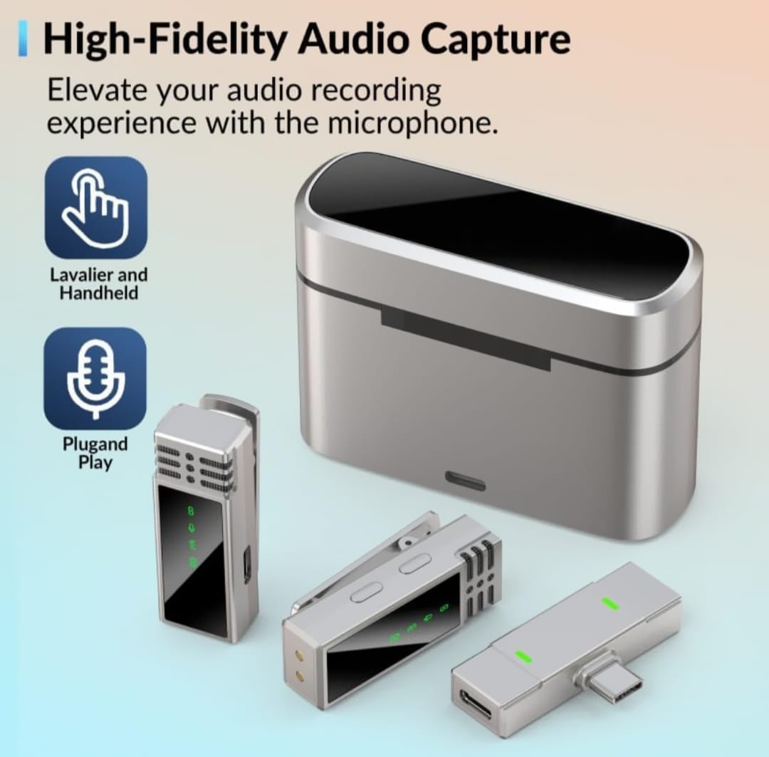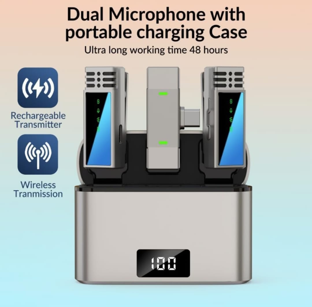 MW-1 Dual Wireless Lavalier Microphone with Charging Case – USB-C/Type-C