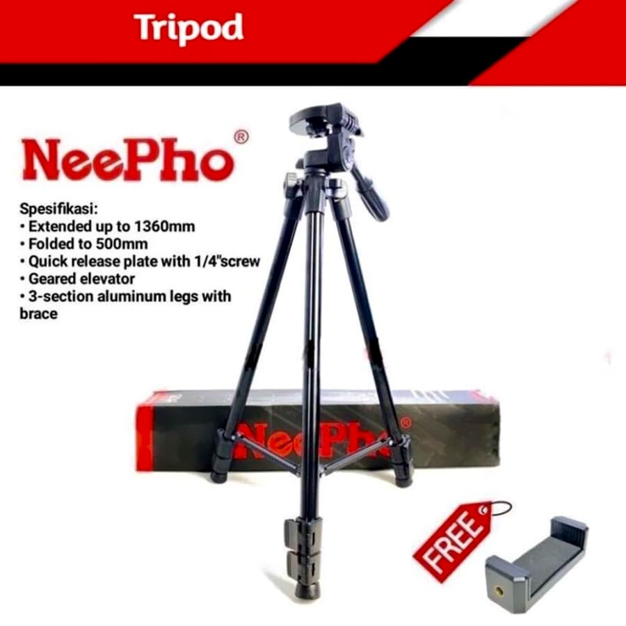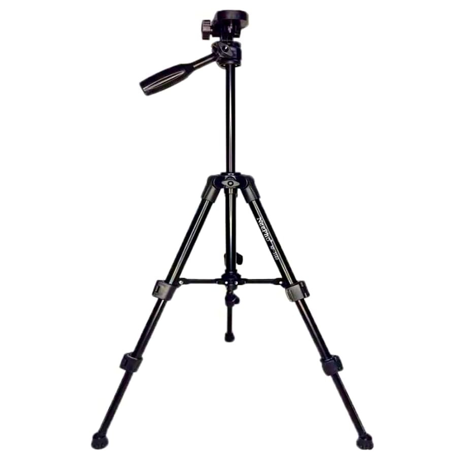 Durable aluminum tripod suitable for DSLR/SLR cameras, smartphones, projectors, and ring lights. Lightweight, foldable design with 360° pan-tilt head and quick-release mount.
