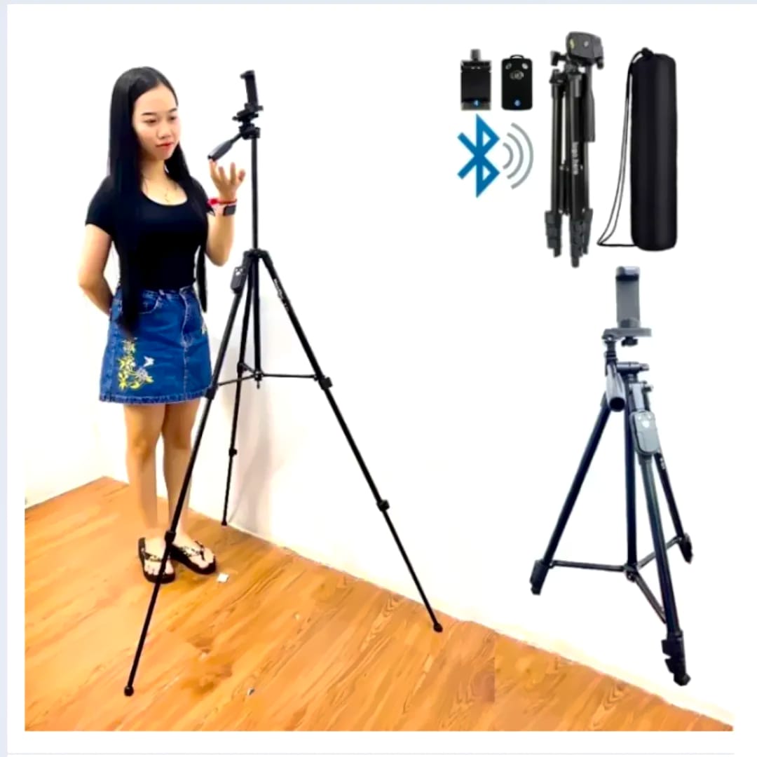 Sturdy and lightweight tripod designed for stable shooting. Features 360° rotation, wireless remote, secure flip locks, and durable aluminum alloy legs. Ideal for DSLR/SLR cameras and content creation.