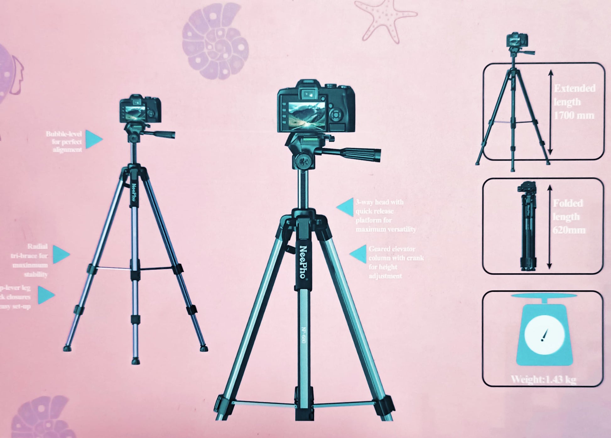 heavy-duty tripod designed to support large lenses and professional camera setups. Its reinforced build and adjustable height make it ideal for studio, outdoor, and wildlife photography.