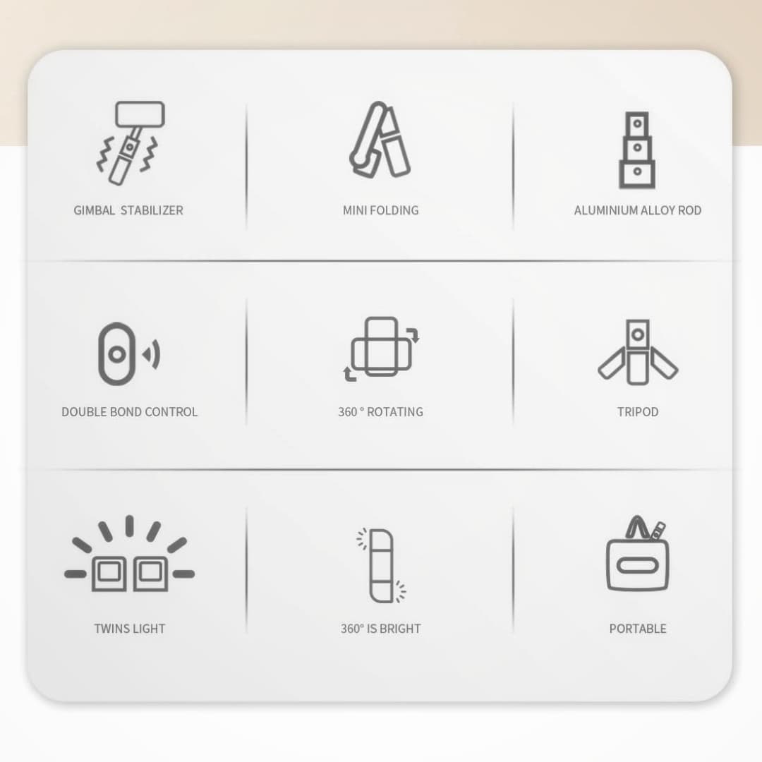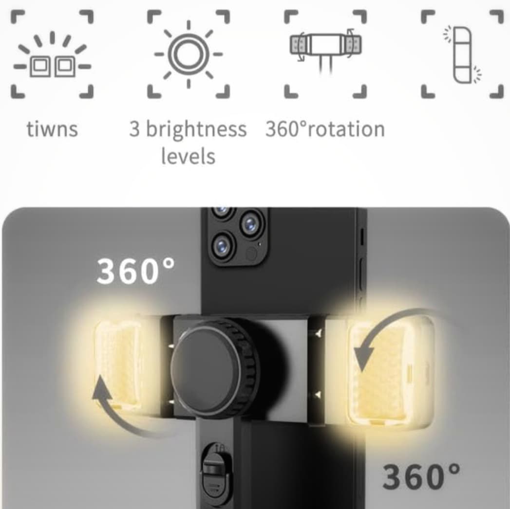 Capture smooth and professional-quality photos and videos with this 3-in-1 gimbal stabilizer, selfie stick, and tripod. Designed for creators, vloggers, and selfie enthusiasts, it features twin rotating lights, wireless remote control, and a stable tripod for hands-free shooting.