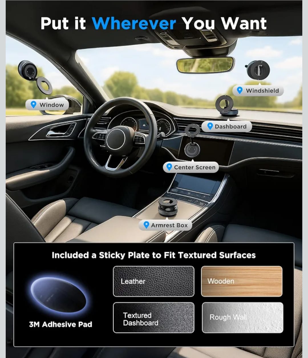 The Vacuum Mobile Holder Magsafe (360° Rotatable) offers a powerful magnetic grip and 360° rotation, perfect for use anywhere — desk, wall, car, or kitchen. Its foldable, compact design saves space while keeping your phone secure and easily accessible. Compatible with all smartphones including iPhone