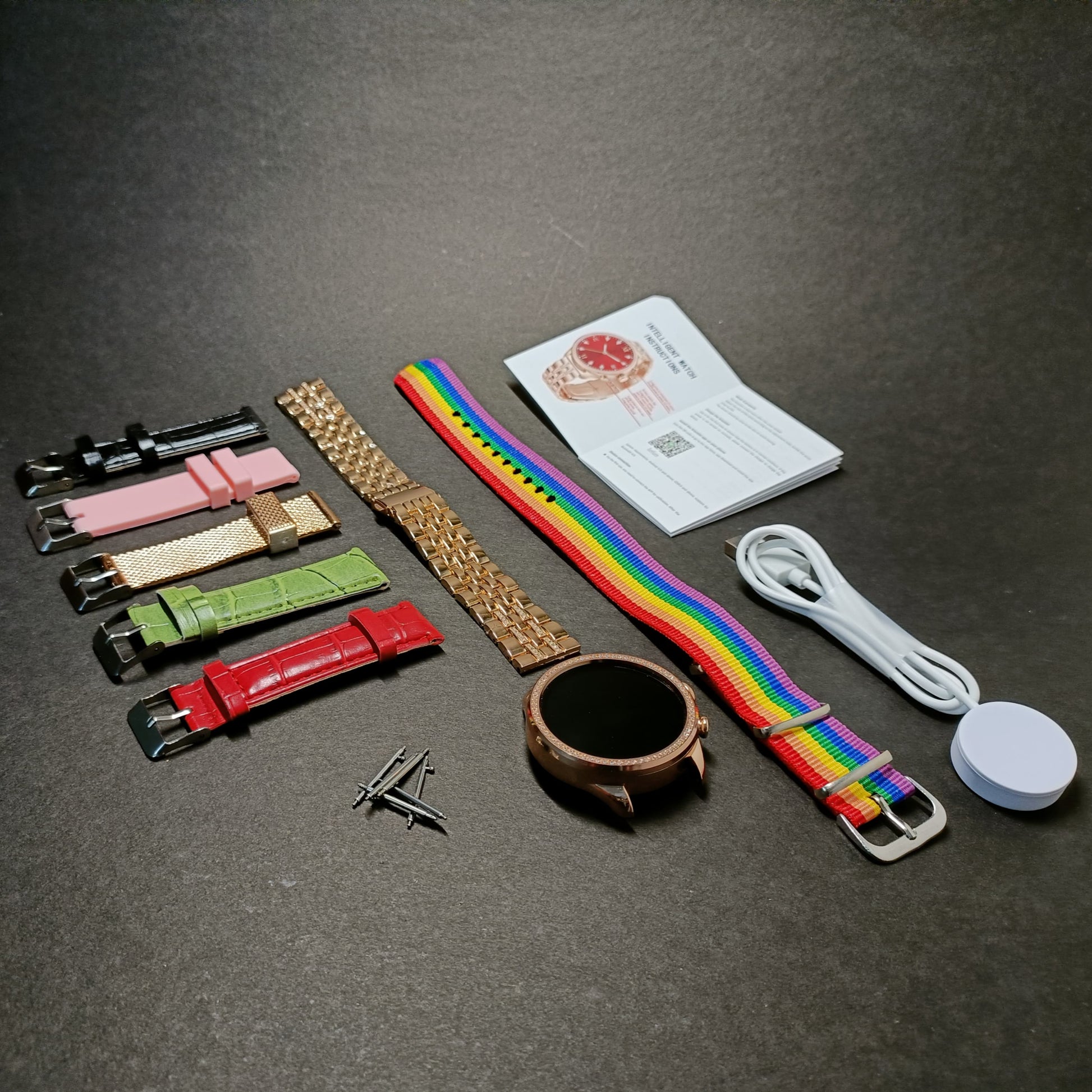 Women's BT 7-Strap Smartwatch Combo with AMOLED Display (Multicolor Straps, Free Size)