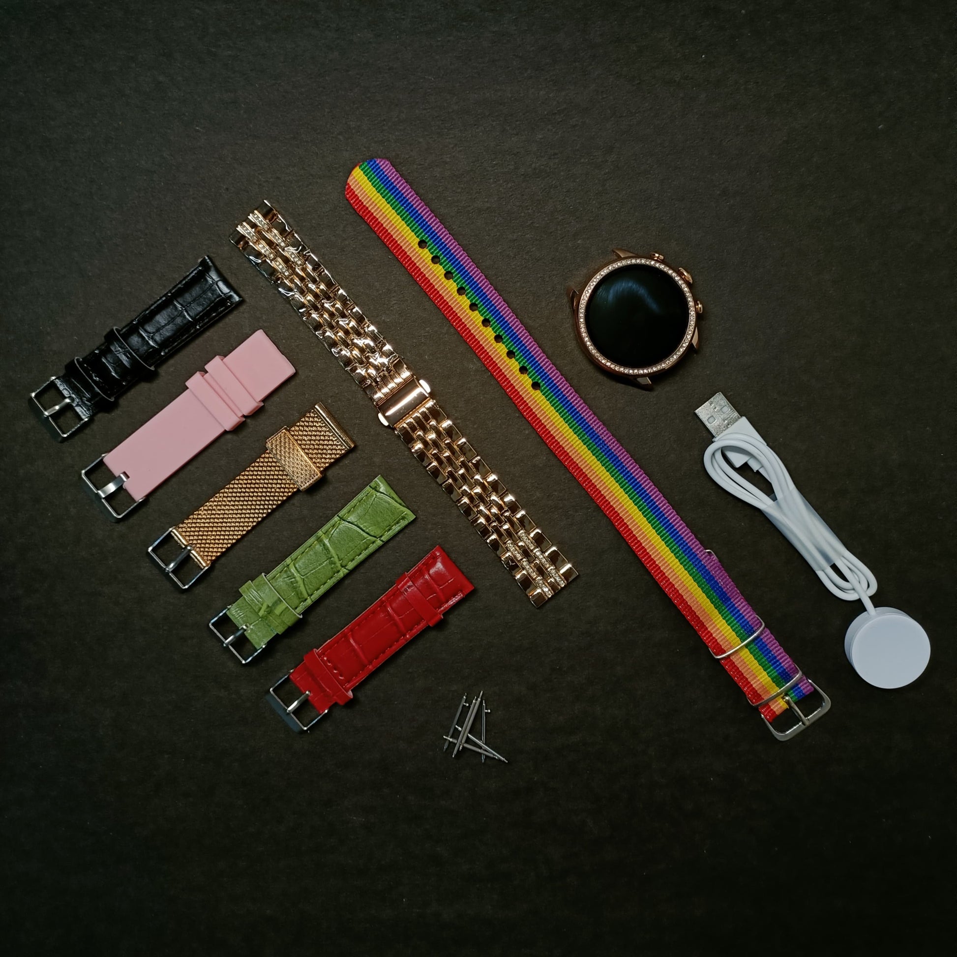 - 7 Interchangeable Straps: Includes 7 stylish, multicolor straps that are easy to swap, giving you endless style possibilities for any outfit or occasion.